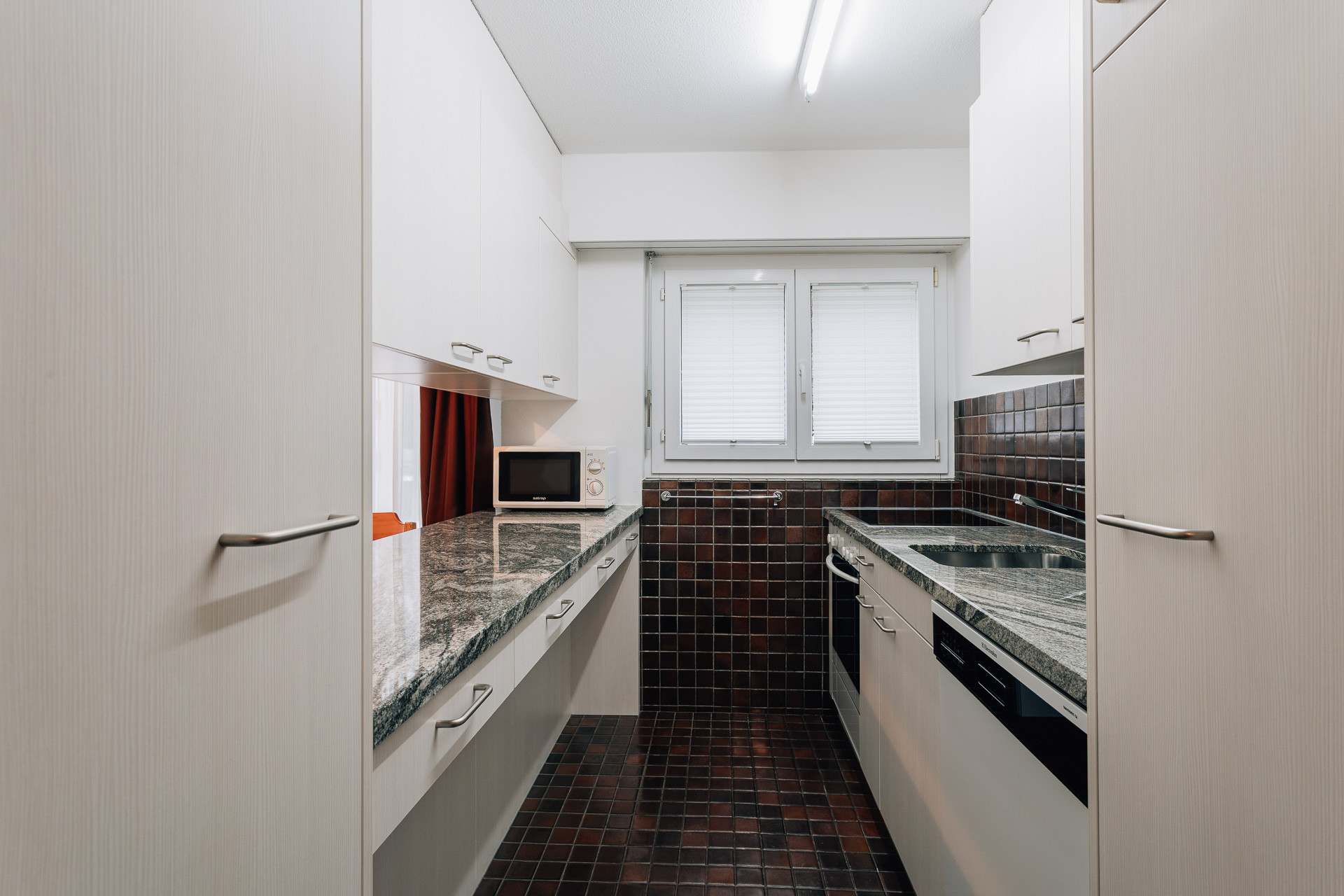 The renovated 2.5-room apartment is ideal for a family with two children. The bedroom features a double bed as well as a bunk bed. The bright living room provides ample space to relax, enjoy a cozy movie night, or dive into your exciting vacation read. The modern, open kitchen offers all the comforts and is fully equipped. After a day of skiing or hiking, unwind in the rainfall shower of the Valserstone-style bathroom. Additionally, you can enjoy a spacious, sunlit balcony with views of the Grisons mountains throughout the day.