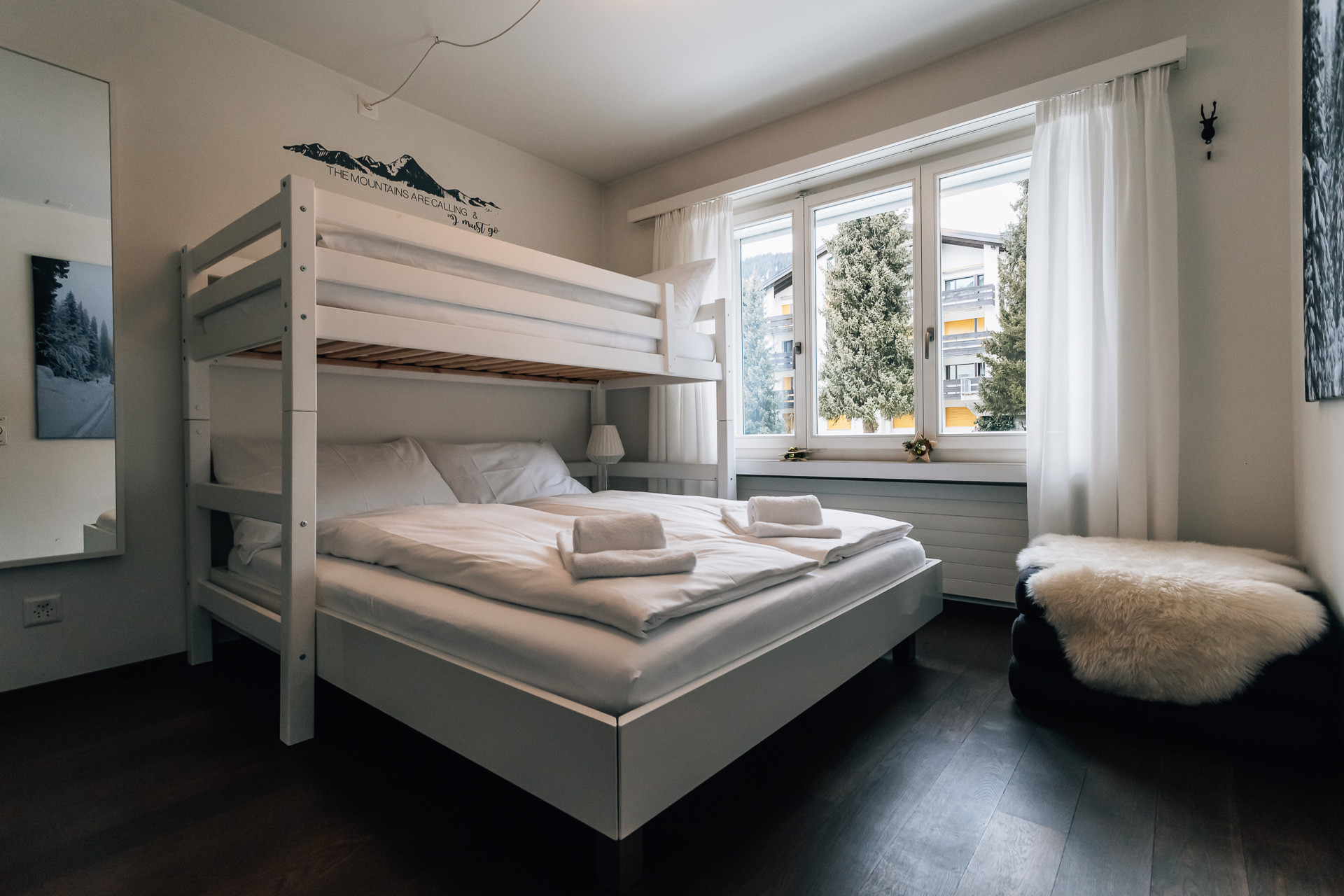 The renovated 2.5-room apartment is ideal for a family with two children. The bedroom features a double bed as well as a bunk bed. The bright living room provides ample space to relax, enjoy a cozy movie night, or dive into your exciting vacation read. The modern, open kitchen offers all the comforts and is fully equipped. After a day of skiing or hiking, unwind in the rainfall shower of the Valserstone-style bathroom. Additionally, you can enjoy a spacious, sunlit balcony with views of the Grisons mountains throughout the day.