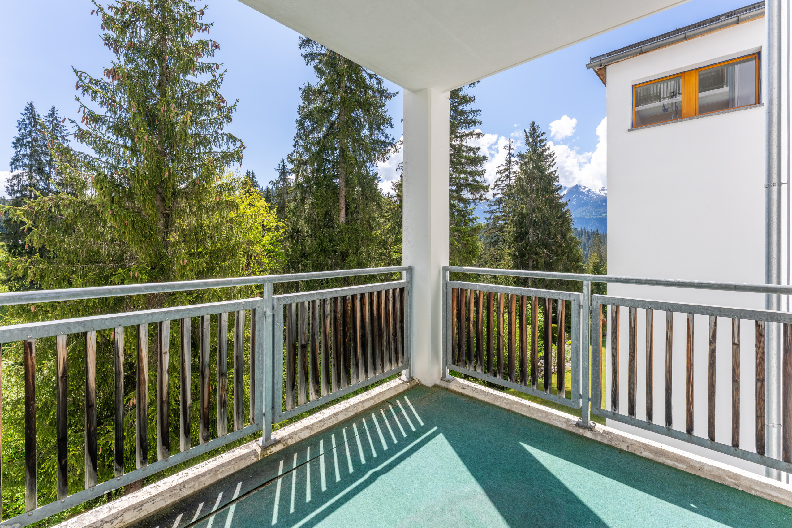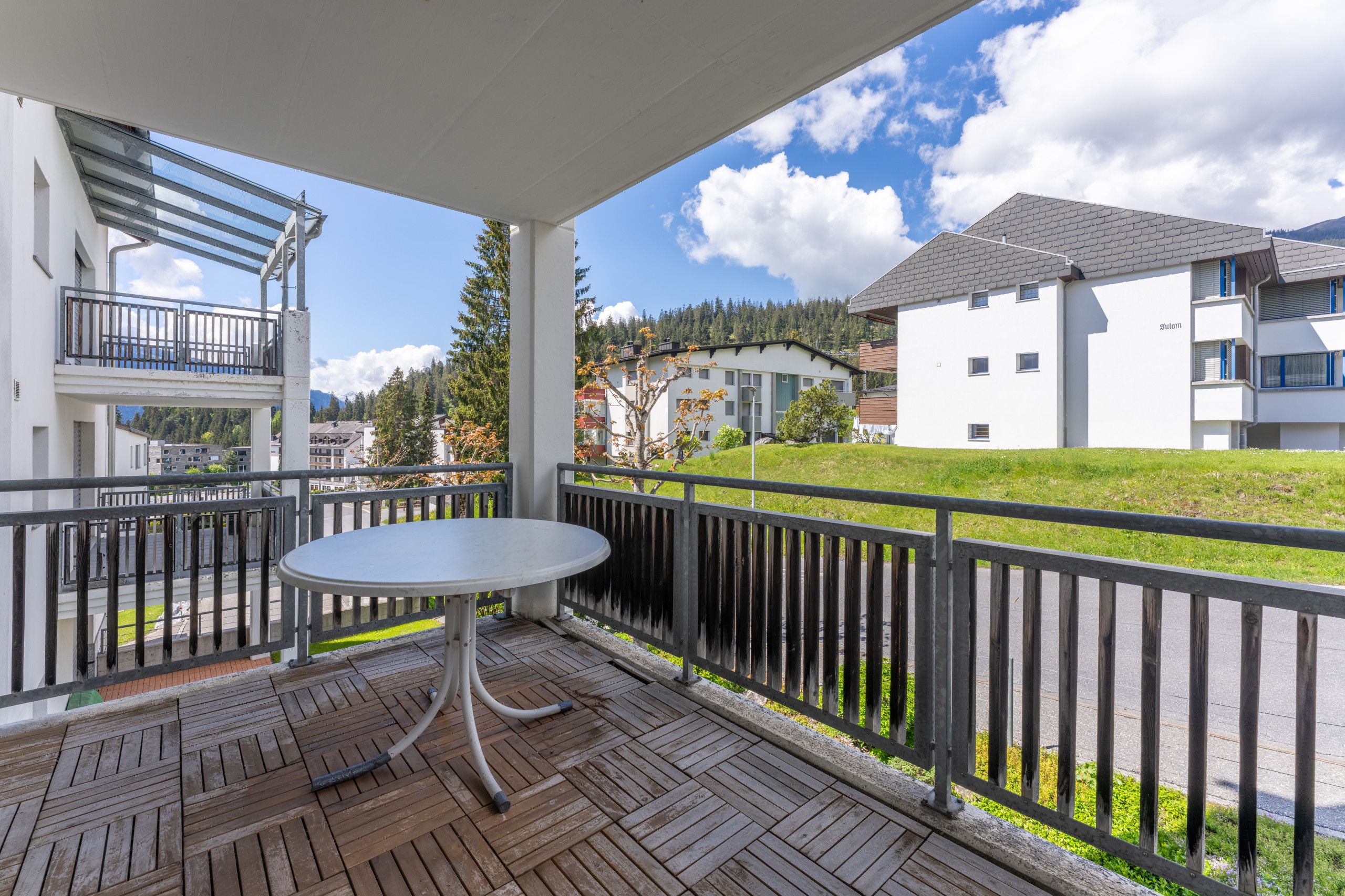 The apartment in Laax is located just a two-minute walk from the Laax valley station. The Rocksresort, with excellent shopping facilities, restaurants, and bars, is only a five-minute walk away. The mountain lifts are also in the immediate vicinity.
