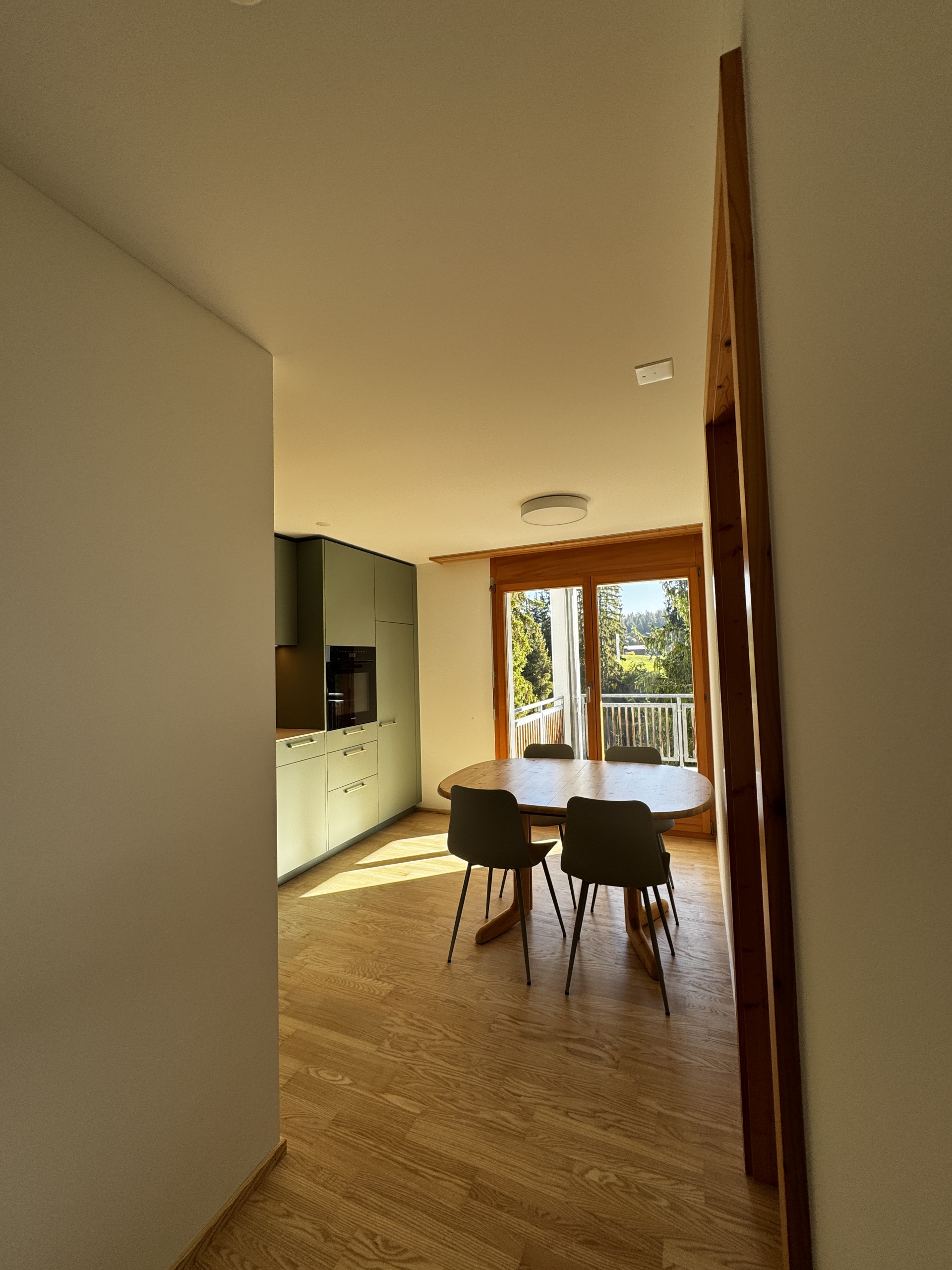 The renovated 2.5-room apartment is ideal for a family with two children. The bedroom features a double bed as well as a bunk bed. The bright living room provides ample space to relax, enjoy a cozy movie night, or dive into your exciting vacation read. The modern, open kitchen offers all the comforts and is fully equipped. After a day of skiing or hiking, unwind in the rainfall shower of the Valserstone-style bathroom. Additionally, you can enjoy a spacious, sunlit balcony with views of the Grisons mountains throughout the day.