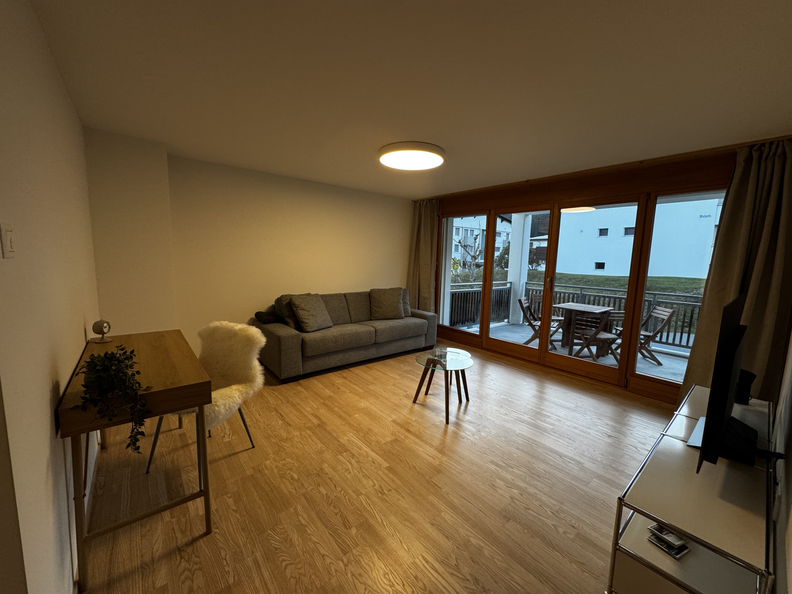 This charming 2.5-room apartment (42.5 m²) is centrally located in Laax-Murschetg, just a few minutes' walk from the cable cars. It is ideal for couples, small families, or active individuals who want to enjoy the diverse leisure opportunities in the Grisons Alps in both summer and winter.