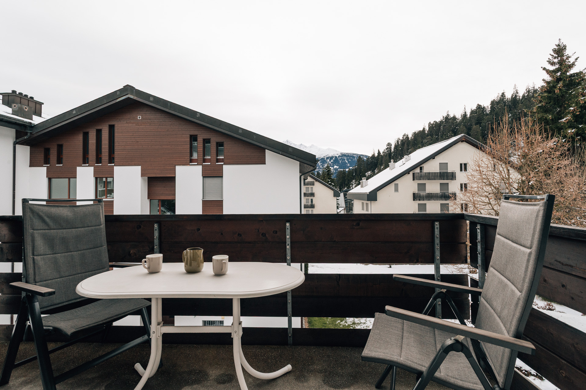 This stylishly furnished studio apartment (*** / 37 m²) is located on the top floor of a well-maintained multi-family house near the Laax mountain lifts. It combines modern comfort with alpine charm: exposed wooden beams, a cozy fireplace, and plenty of natural light create a warm and welcoming atmosphere.