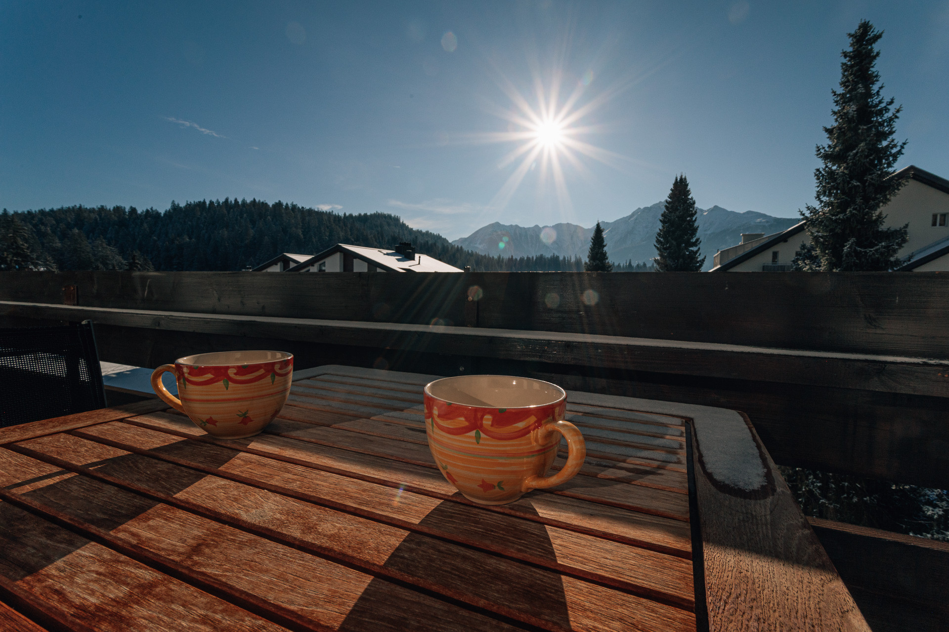 Auf dem sonnigen Südbalkon geniessen Sie den Blick auf die umliegende Bergwelt. Das Hallenbad im Haus ist direkt über die Tiefgarage zugänglich, und eine Sauna steht gegen eine kleine Gebühr (Münzeinwurf) zur Verfügung. Ein reservierter Tiefgaragenplatz gehört ebenfalls zur Wohnung.