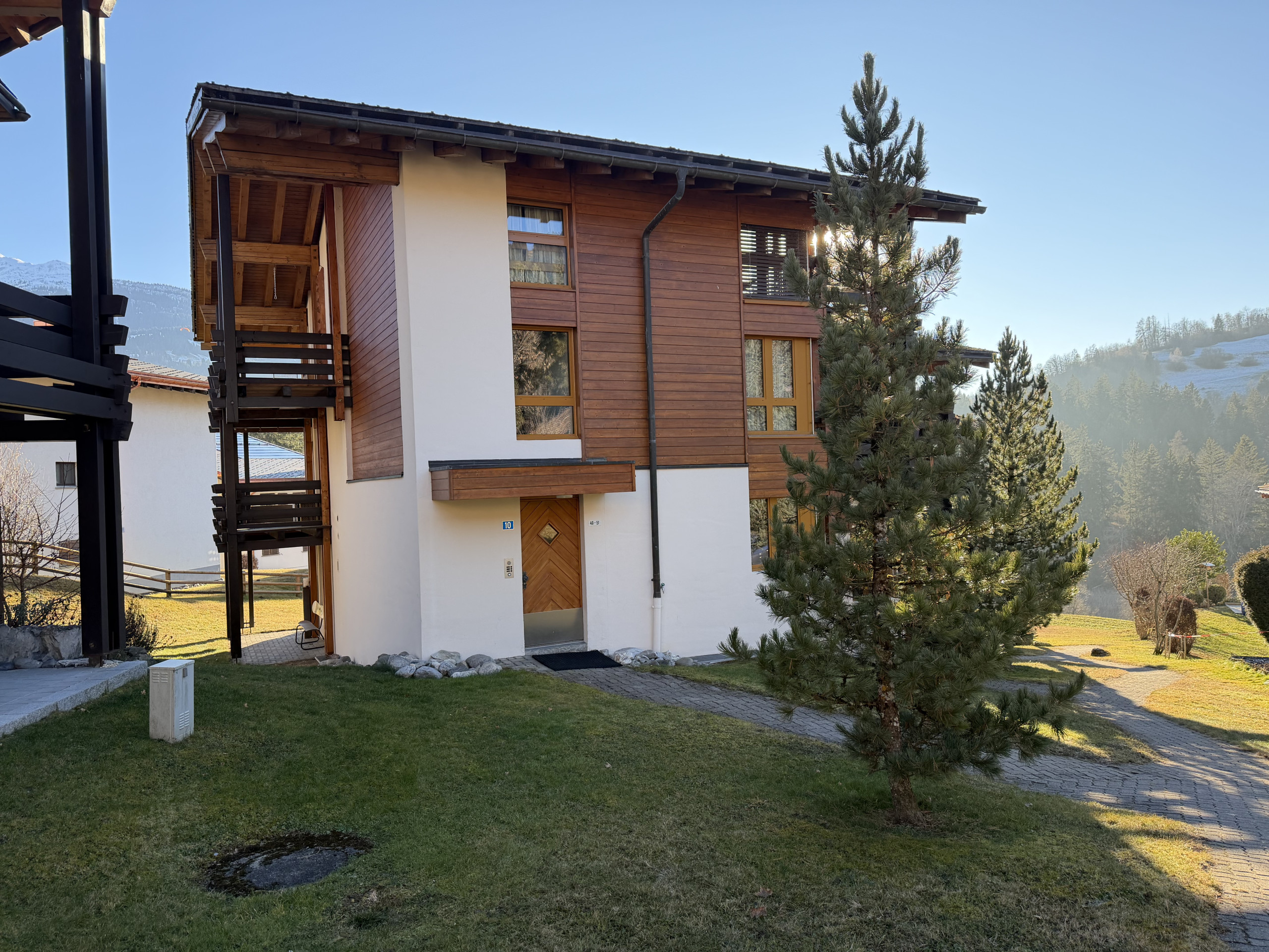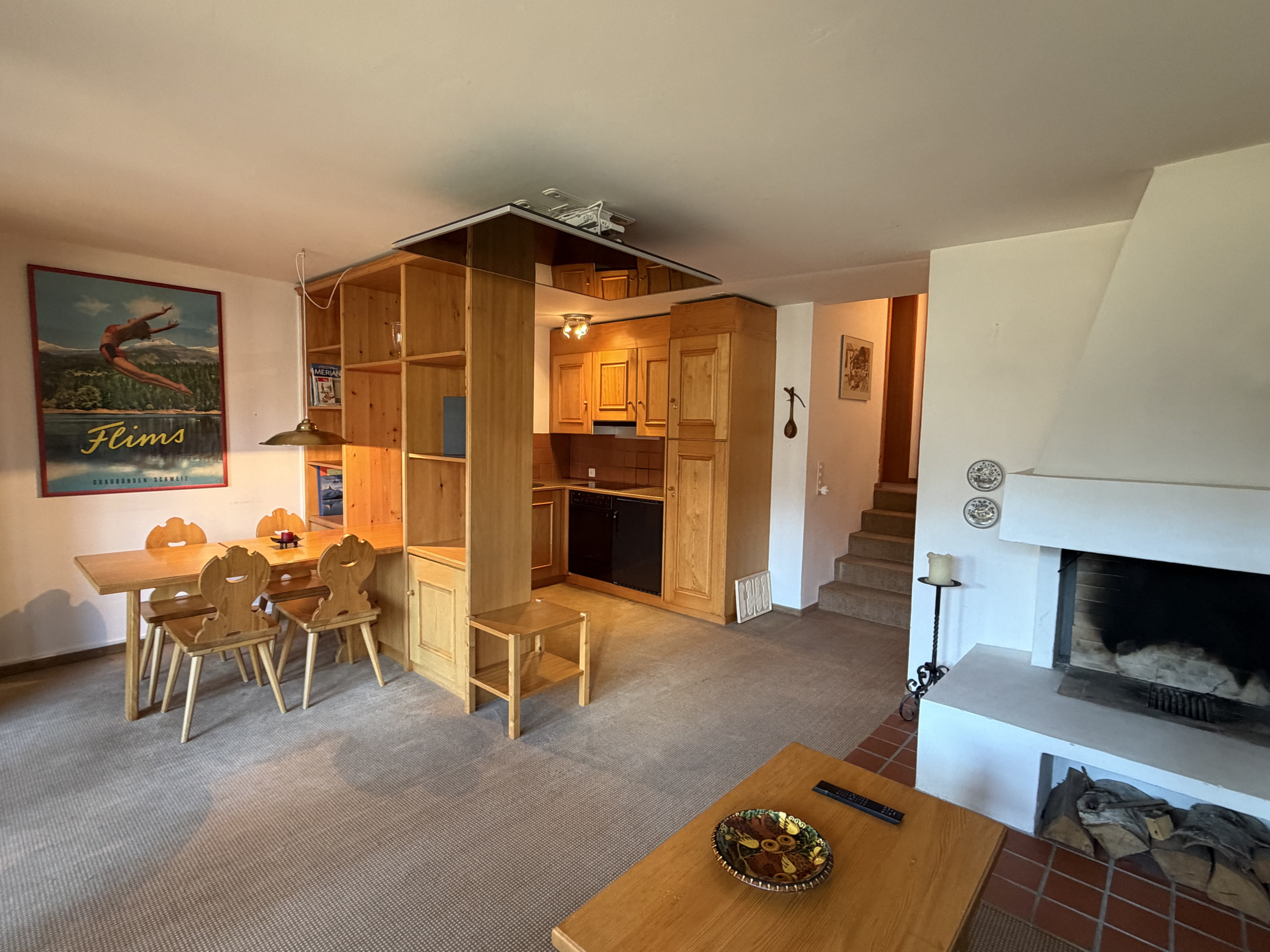 Moderne 2.5-Zimmer Wohnung in Laax Murschetg. Die Wohnung liegt in unmittelbarer Nähe zur Piste und überzeugt durch ihre ruhige und dennoch zentrale Lage – ideal, um direkt in den Tag auf Skiern oder beim Wandern zu starten.
