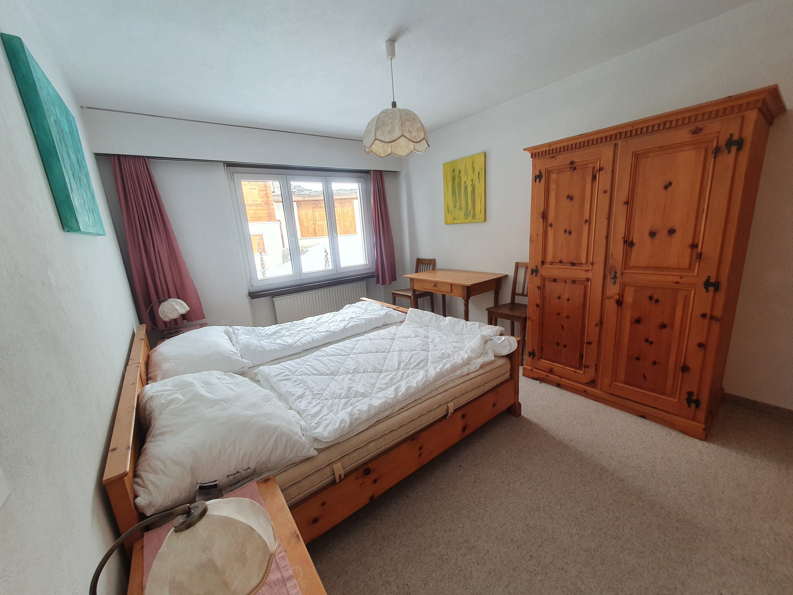 Der helle Wohnbereich verfügt über ein Sofa, einen Sessel, einen Klubtisch, TV und WLAN und führt direkt auf den grosszügigen, nach Süden ausgerichteten Balkon mit Tisch, Stühlen und Liegestühlen, der sich perfekt zum Entspannen und Sonnen eignet. Die Wohnung bietet drei komfortable Schlafzimmer: das Hauptschlafzimmer verfügt über ein Doppelbett und einen grossen Einbauschrank, das zweite Schlafzimmer ist mit einem Doppelbett ausgestattet und das dritte Schlafzimmer bietet ebenfalls ein Doppelbett sowie einen Kleiderschrank. Das im Herbst 25 renovierte Badezimmer verfügt über ein Lavabo, einer Dusche sowie ein WC.